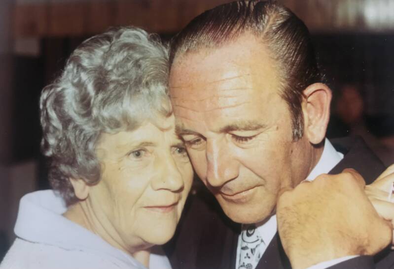 Zus van papa, tante Annie aan het dansen met de vader van papa.